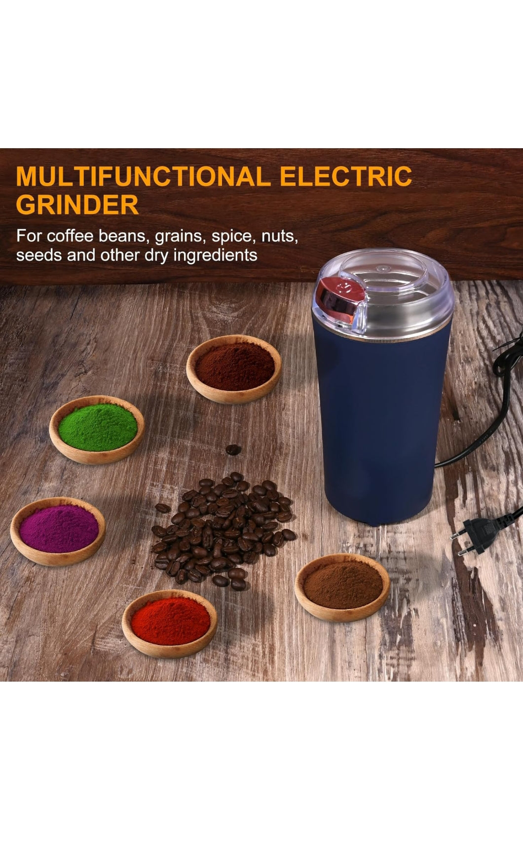 【Powerful Coffee Grinder】: The grinder is equipped with a powerful 200W motor that rotates at 30,000 rpm. The uniquely shaped stainless steel blades grind all around and are fully sharpened in seconds. You can use this grinder as a food grinder, nut grinder, pepper grinder, coffee grinder or all-purpose spice grinder in your kitchen